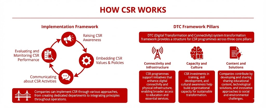 - Connectivity and Infrastructure: CSR programmes support initiatives that enhance digital connectivity and physical infrastructure, enabling broader access to education and essential services.